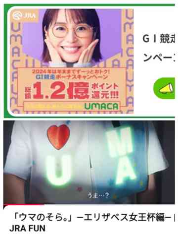 ◯CM 推しと同じコーディネートの部分が気になります。洋服ならば勝負服。CMと同じ勝負服でサンデーレーシング