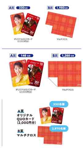 11/10に各競馬場において「UMACAスマート抽選会」なるものがありますが、競馬場ごとにA賞、B賞の当たりの数が違うのが気になります。