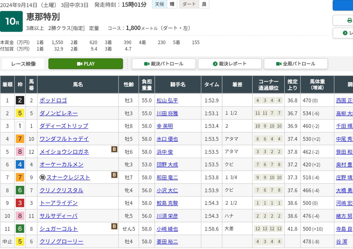 昨年、中京で菱田が落馬したときに勝ったのがポッドの馬