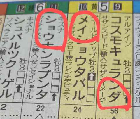 ヘッドライン(屈強)とニシノインヴィクタ(無敵)がなんとなく。