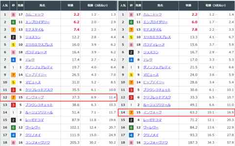 昨日終了時60倍超えていたインヴォーグがここの争いに加わるとは思ってもみませんでした。