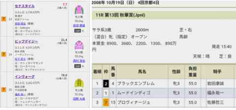 週末はウマでしょ でも、2008年 秋華賞の荒れたことが取り上げられています。