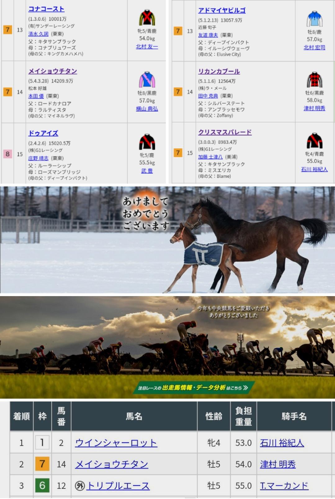 今のところFacebookや他の画面関連からは目立ったものはありませんので、今回の金杯は年末画像に"乗っかる"予定です。