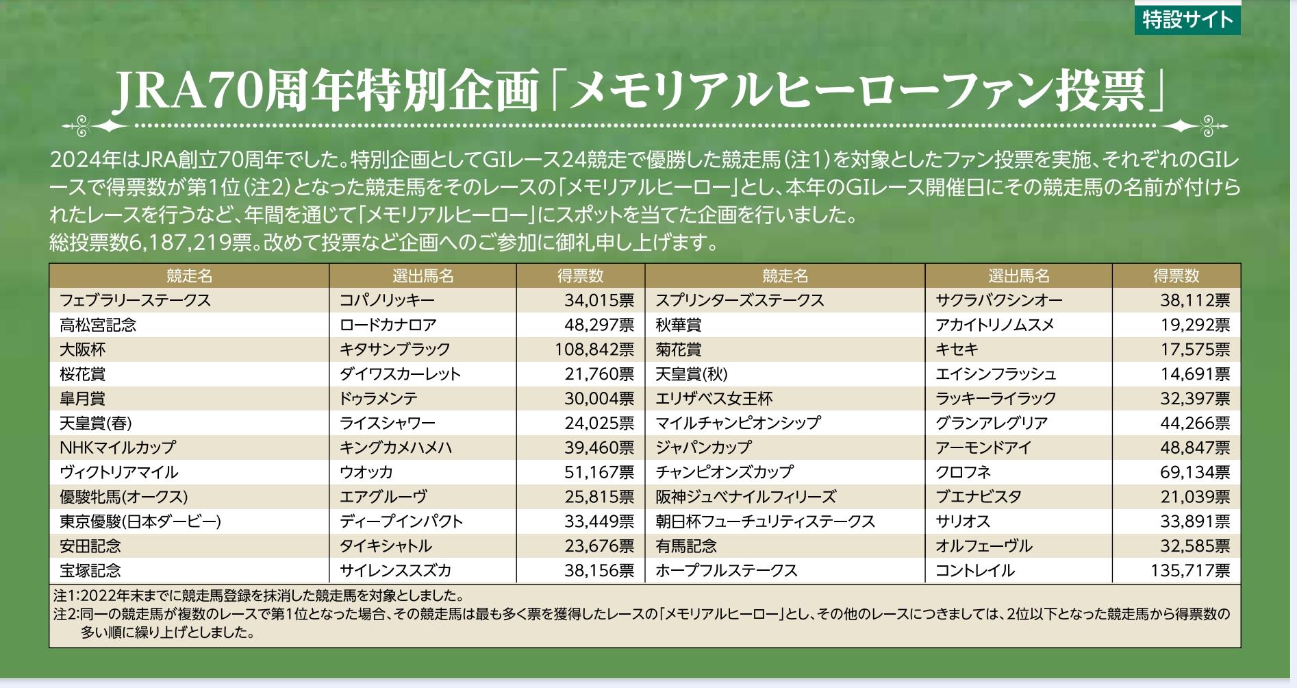 70周年ラスト『コントレイル』は【最多得票数】の135,717票。