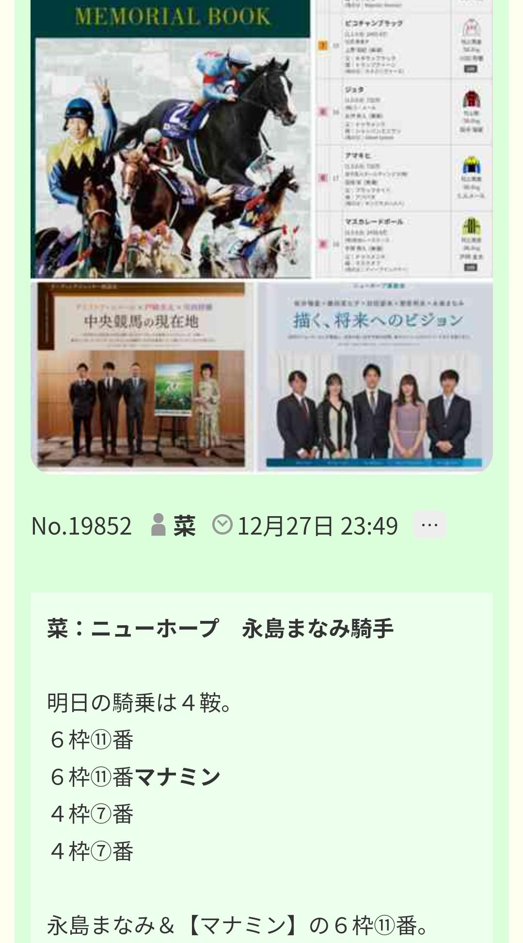 6枠⑪番はお伝えしたように、ホープ永島まなみ 【6枠⑪番マナミン】からです。