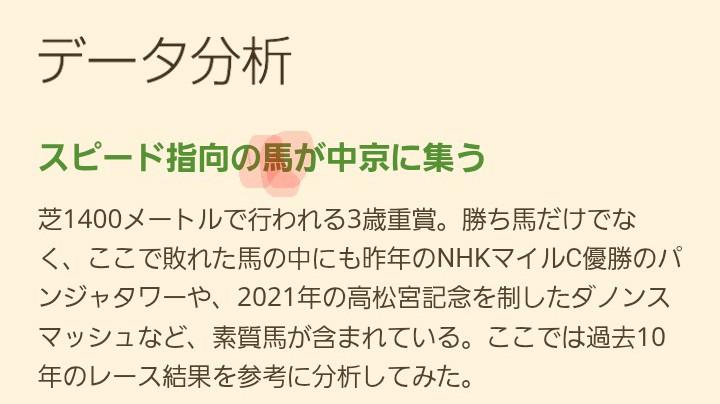 データ分析のコピーに出てくる単語と、馬名意味が合致。