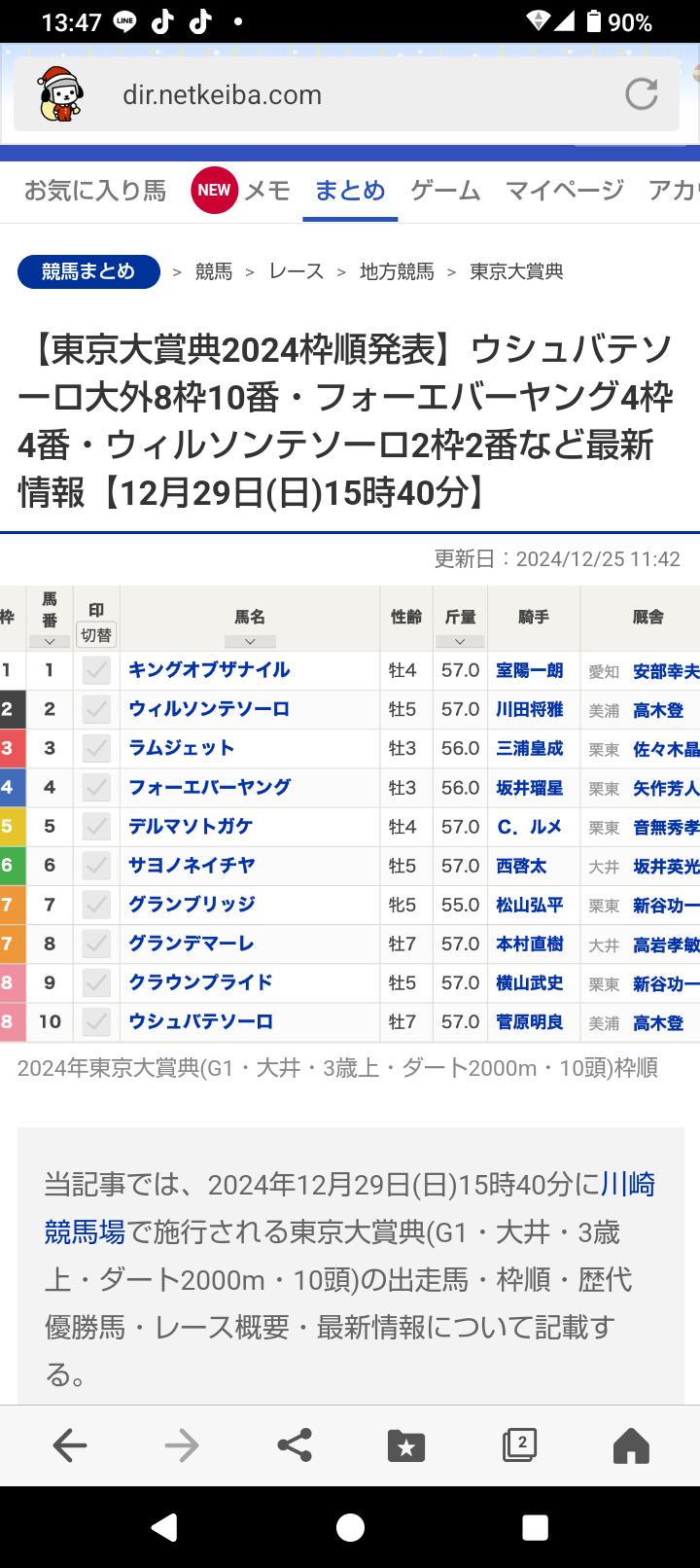 東京大賞典は今のところ13頭立ての予定。