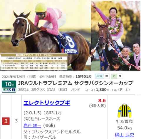 スプリンターズステークスでは、横山典弘の子・武史騎手がママコチャのと同枠の3枠。