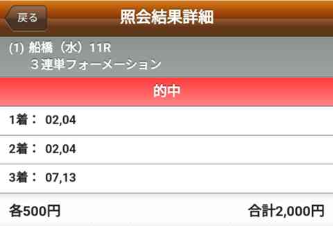 尚、カキコミはしていませんが船橋の他のレースで単勝が当たって本日の収支はちょいプラスでした。