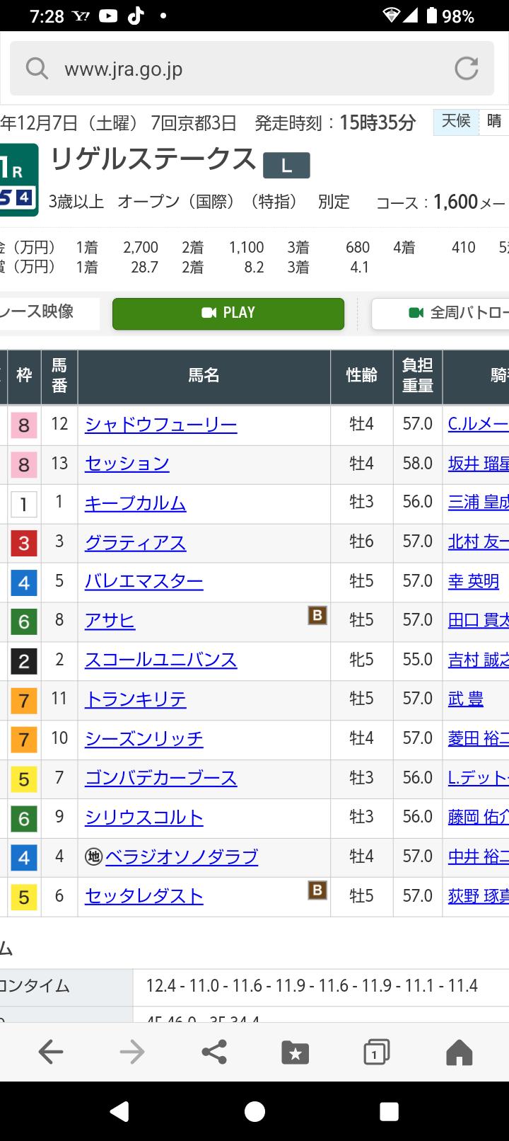 度々すいません、リゲルSの結果昨日