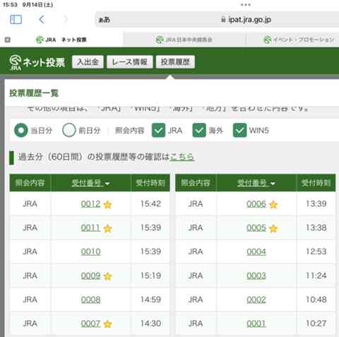 5番と7番の複勝とワイド⑤-⑦を買ってみますが明日のローズSに繋がるかどうかが肝心。