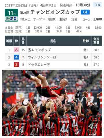 本日プレゼンターの小野伸二の引退試合は昨年の12月3日でしたが、同日中山競馬場では「チャンピオンズカップ」が行なわれました。