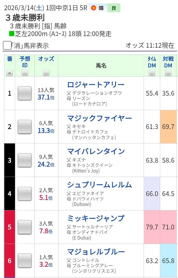 現在⑧人気で昨年同条件は3月23日2中京4日3Rでしたが⑧人気1着。