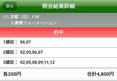 凱旋さん、万馬券的中、おめでとうございます。