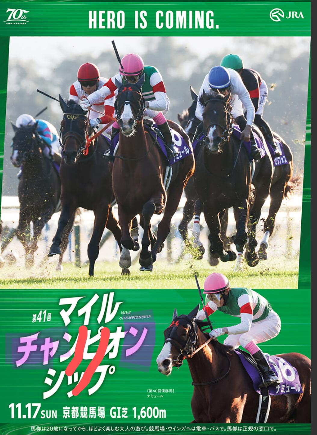 今週の注目レースと去年のGI マイルチャンピオンシップの成績ページ。