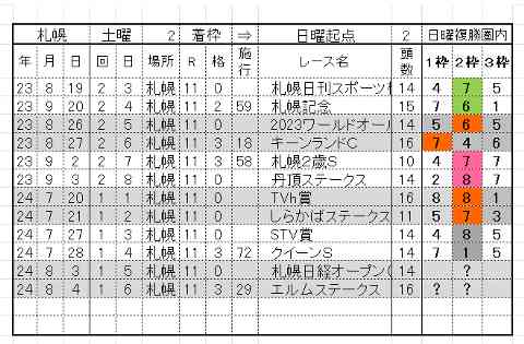 札幌偶数日MRは奇数日MRの2着枠の起点2が連対圏内
