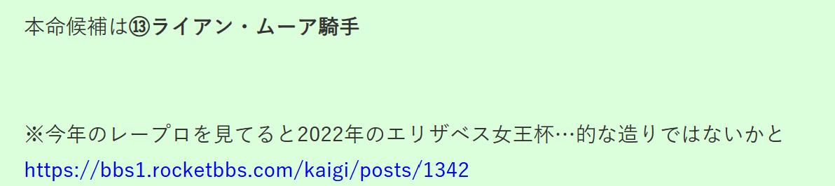 惜しむらくはエリザベス女王杯に繋がっていたと気付かなかった事です。