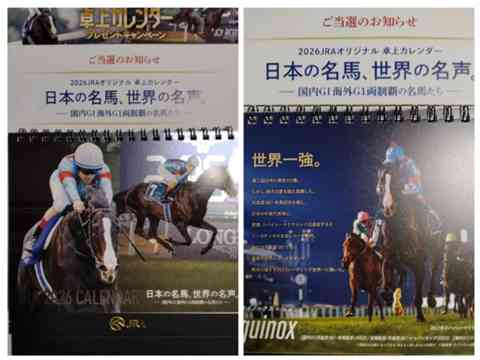 JRAから来年の「卓上カレンダー」が届いておりましたが…「21万人」に当たるはずなので応募さえすればほとんどの方が手にしているとは思います。