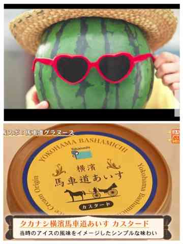「アイスクリーム」「横浜」「メガネ屋」などなどですけど…メガネは見当たらないのですが「サングラス」は簡単に出てきます。サングラスはCMでも使われているのでここと「横浜」→横山、浜中を絡めて