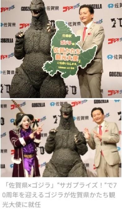 ゴジラが「佐賀県かたち観光大使に就任」。