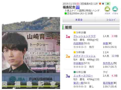 福島ではラジオNIKKEI(三浦皇成!!! 8枠11g7人気2着)と福島記念(菱田)の2鞍。逃げ馬!