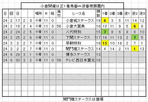 例えば共に18頭立でとして土曜MR正2番が1着でしたら北九州記念では逆2番(正17番)が2着