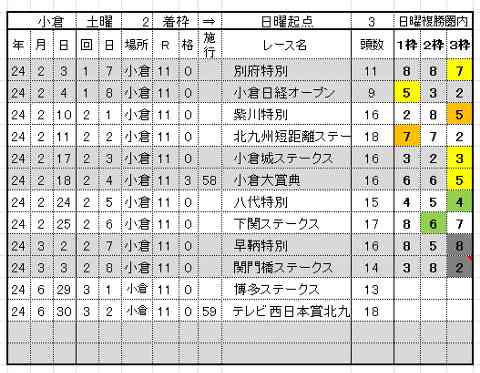 昨年、3小倉2日12Rも8月の北九州記念の後の12Rも12番3着。