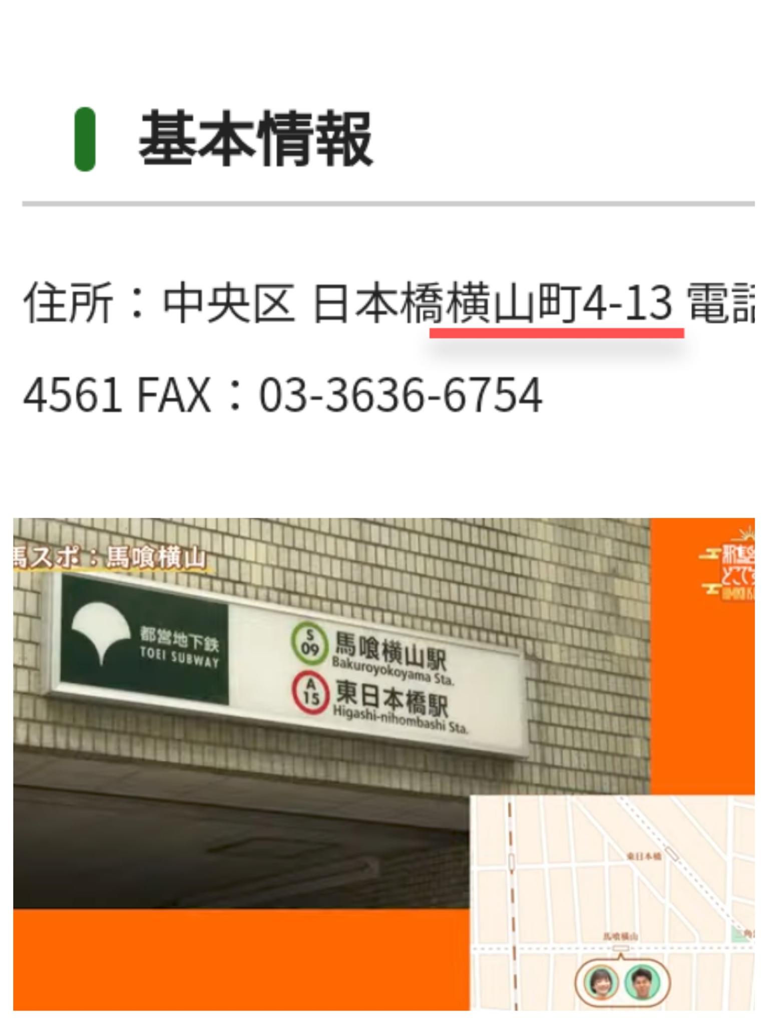 場所は「馬喰横山」駅から…ただでさえ横山が気になるが、それこそ「どこですか?」と思い「馬喰横山駅」を調べたら