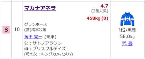 ロイヤルファミリー同様、8枠の武豊騎手だったんです。馬名の由来をみて驚きました。。。8枠の方ですかね?