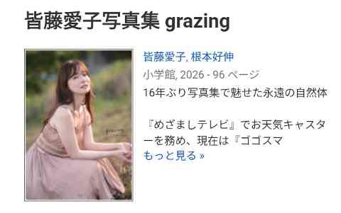プレゼンターの「皆藤愛子」さんは先月写真集を出されましたが…最近40代の女性のグラビア、写真集などが人気らしいですね…全く失礼ながら昔では考えられません。
