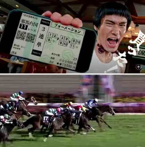 たとえば、このCMならCM公開の次週(または次開催)、馬券になる人馬の氏名を並べ、