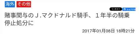 もう一つはマクドナルド騎手、七年前にはなりますが賭博絡みで1年半も騎乗停止になっていること。