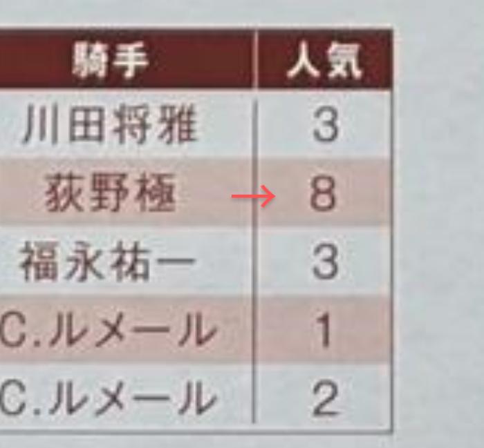 9番は昨年2着ですが前走着順を3着から8着に落としているので割引ました。