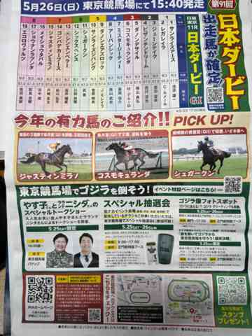 1)2)3)より今年のダービーは池添の同枠の2番、5番の同枠の6番、7番の同枠の8番、11番の同枠の12番(武の同枠)、そして高本さんの15番の5頭の3連単ボックスで行って見ます。