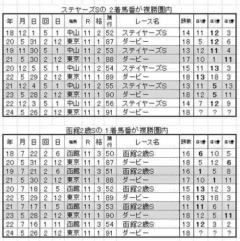 あとは、でてないのが2-4のみ。ただ、ダービーは天皇賞春とカブの関係になるのは、間違いない。