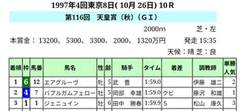 基本はレープロにもある、エアグルーヴ 天皇賞秋⑦⑫