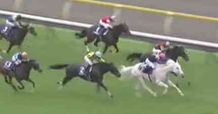 大スクリーンにはソダシの白い脚がうっすらと写ってますか、1コーナー当たりから望遠でも無理があるように思いますが、J様の意図わかりません。