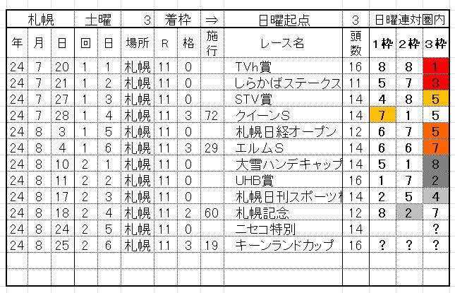 昨年の札幌記念からトップナイフの隣枠から優勝馬が出るので