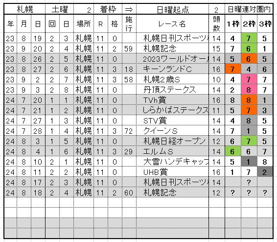 札幌記念の週の123