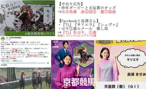 「推し」CMのシュヴァルグランは【①番】。競馬場のイベントのページで長澤さんが示す【①番】そして「推し」【サリエラ】