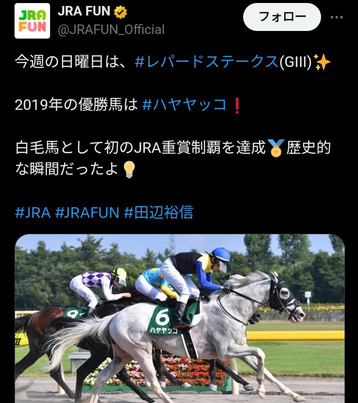 もう一つ気になっていたのがJRA FUNで取り上げられた「ハヤヤッコ」