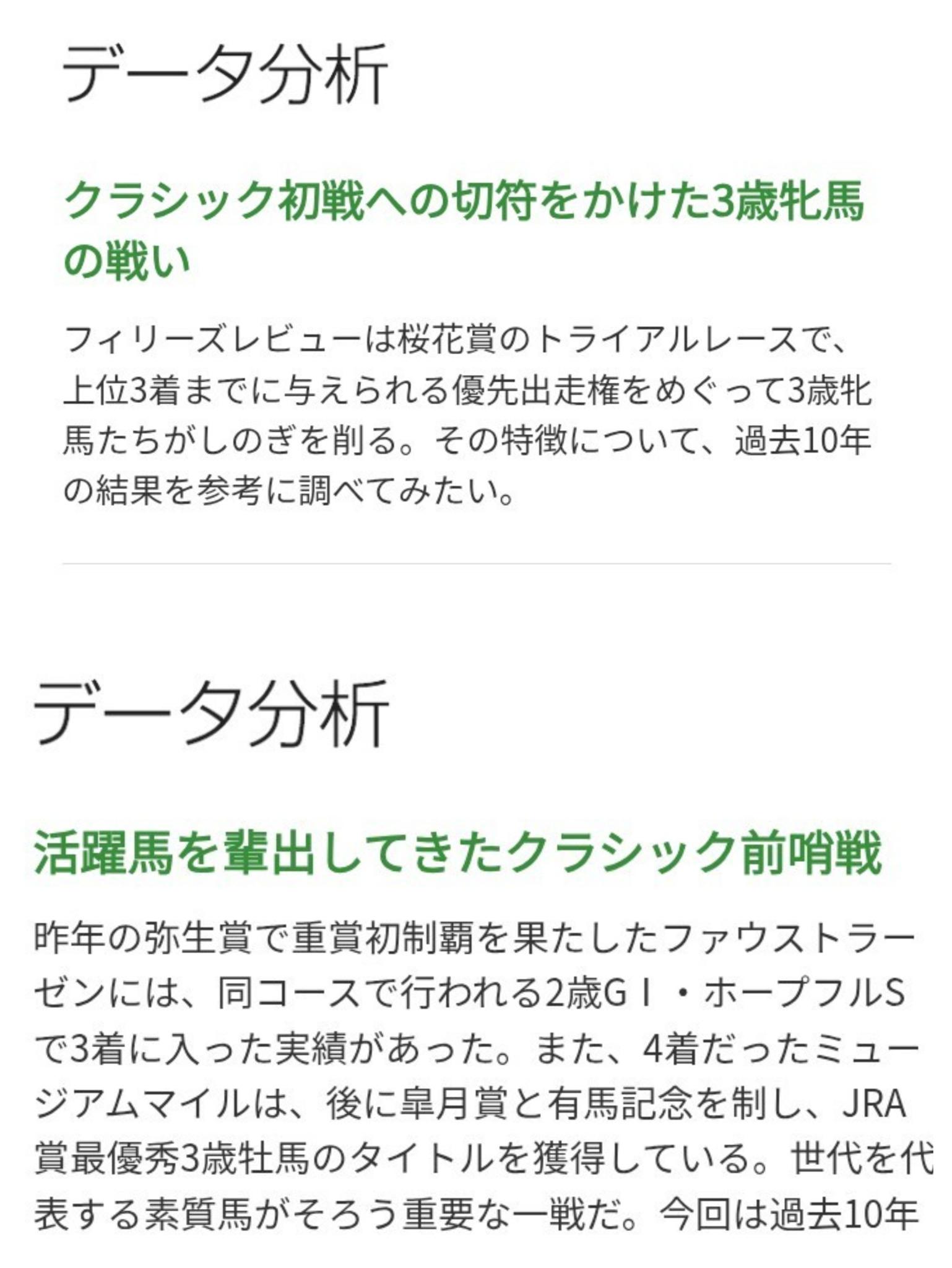 昨年の桜花賞結果などから。