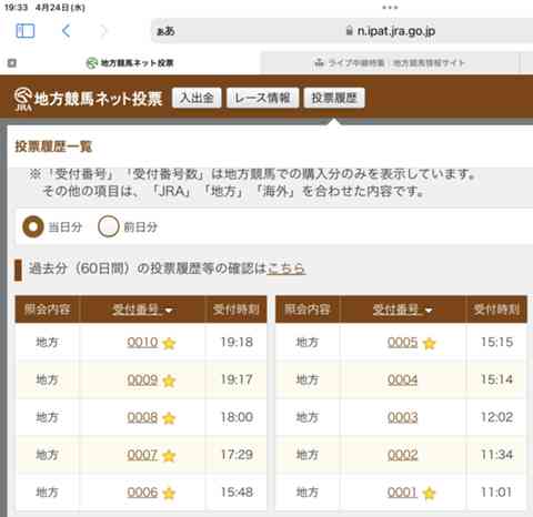 本日は地方競馬を楽しんでいます。今日は絶好調でオリサバシバシ来てます!
