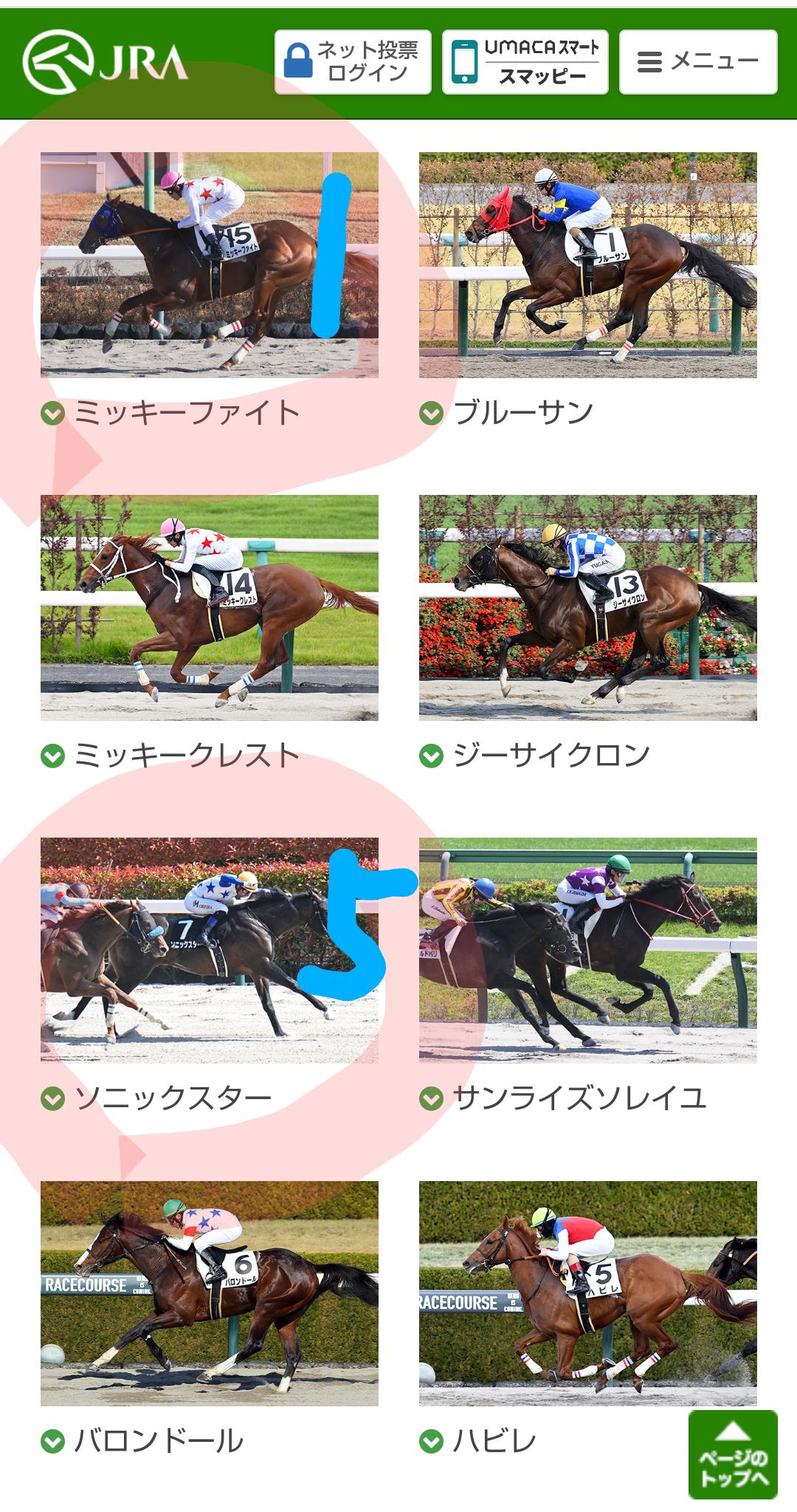 ミッキーファイトが想定1番人気/ミッキークレストが想定4番人気(同枠含む):画像右下