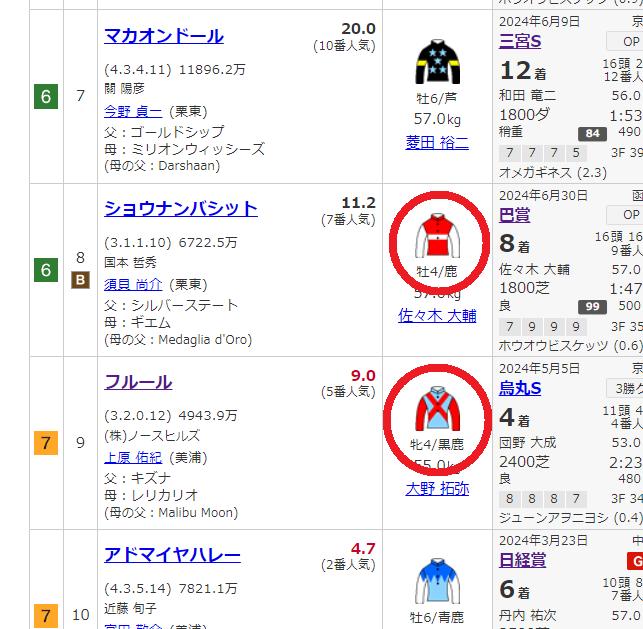 色彩の似た勝負服に注目です。シーズン通してサインとして同枠を含む複勝圏内