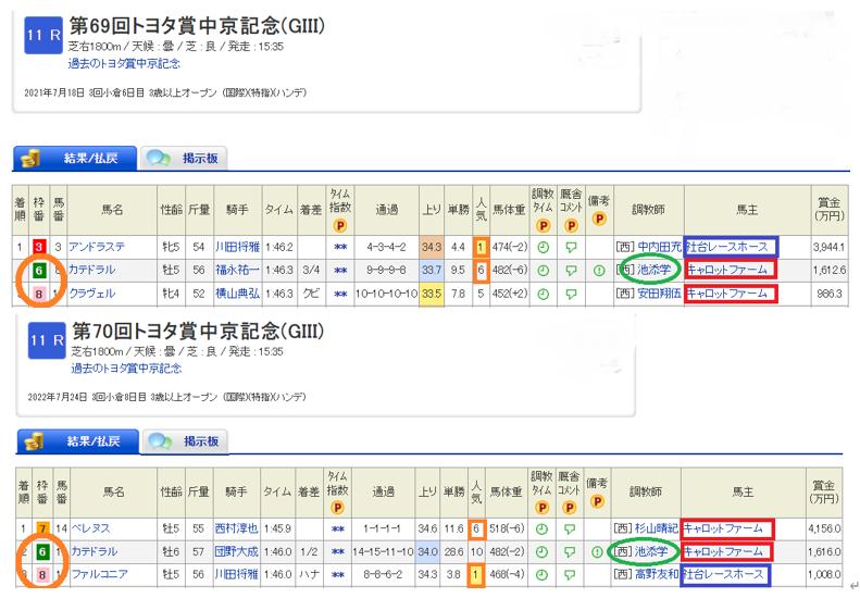 BOSCHさんも仰って居ますが、小倉で行われた【2021年】【2022年】中京記念。共に、