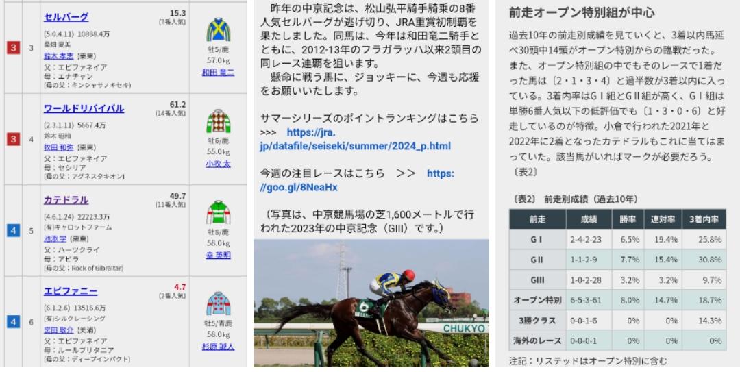 今夏の記念レースが今のところ連勝馬が優勝してるので