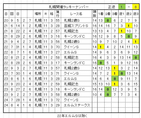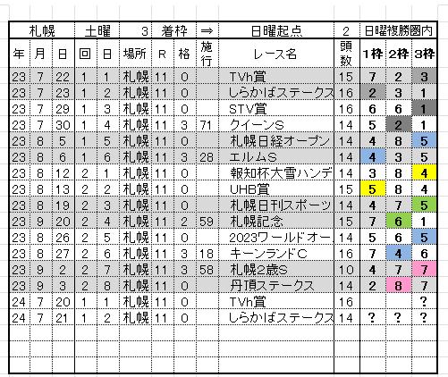 札幌偶数日MRは奇数日MRの3着枠の起点2が複勝圏内
