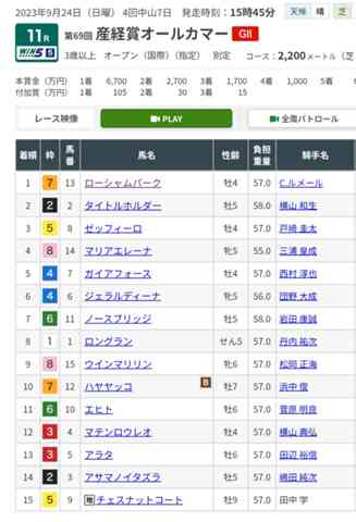 【7枠⑬番】サンデーレーシング、ローシャムパーク。2023年オールカマーは今回と同じ【①番ロングラン】。