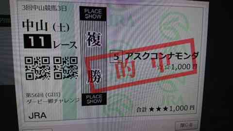 のダ−ビ−馬の馬番に合わせて複勝的中出来ました!